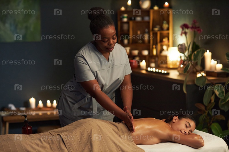 Спа-терапевт дает расслабляющий массаж клиенту