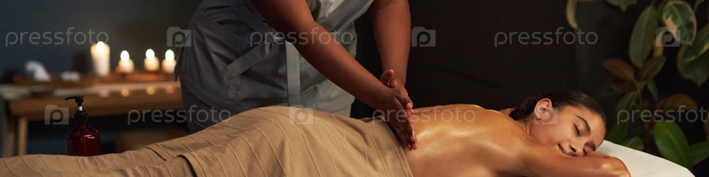 Получение расслабляющего массажа в спа-зале под свечами