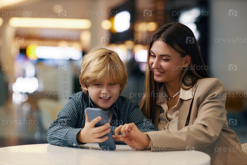Играя в телефонные игры с мамой-мальчиком