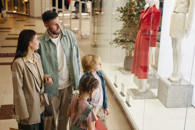 Семья проводит время в торговом центре