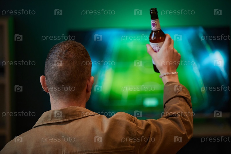 Смотреть футбольную игру по телевизору, держа пиво