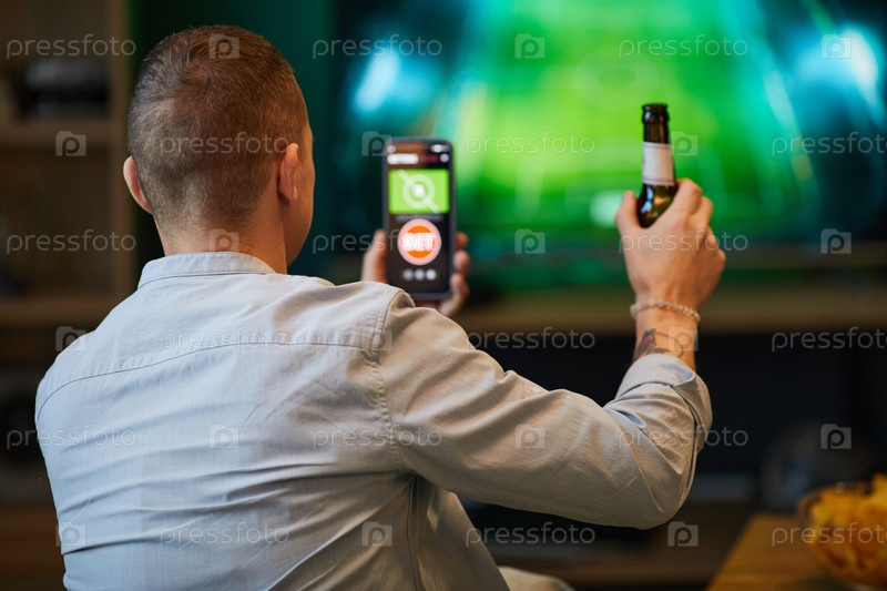 Смотреть спортивное событие на смартфоне, выпивая пиво