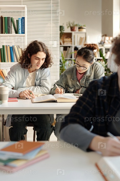 Два студента наслаждаются работой за столом в классе колледжа