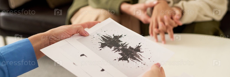 Терапевт показывает пятна на чернила Тест заголовок изображение