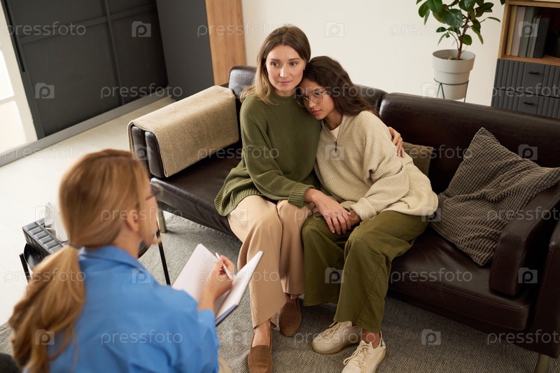 Мать обнимает дочь-подростка в эмоциональной семейной терапии