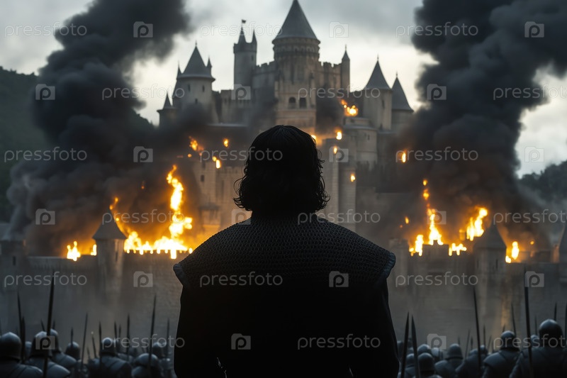 Наблюдение за горящим замком на расстоянии с фотоаппаратом, обращенным вспять