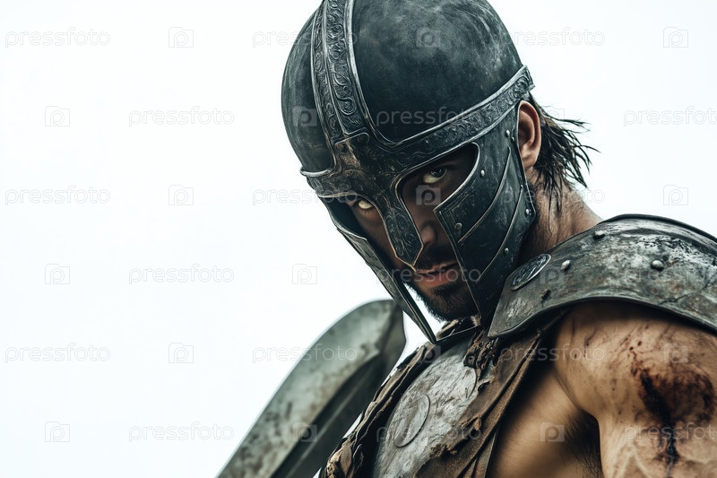 Ношение бронированного шлема Гладиаторский воин Вооруженный щит