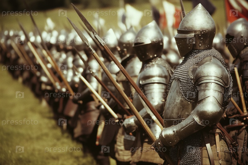 Рыцари в доспехах участвуют в боевом формировании