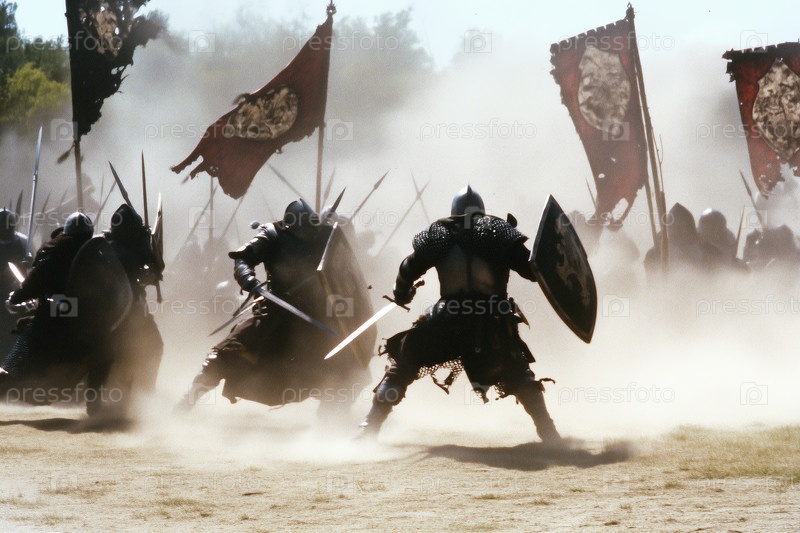 Продвижение бронетанковых рыцарей в боевой сцене со времен Средневековья