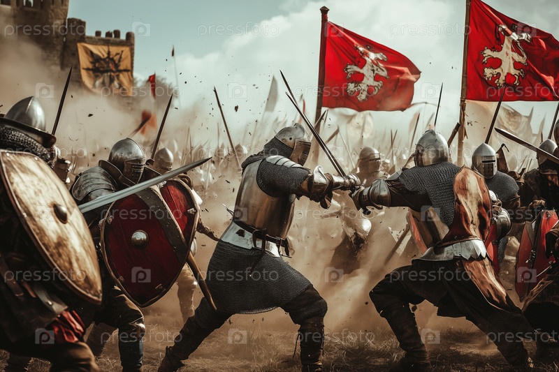 Участие в интенсивной средневековой сцене битвы с рыцарями