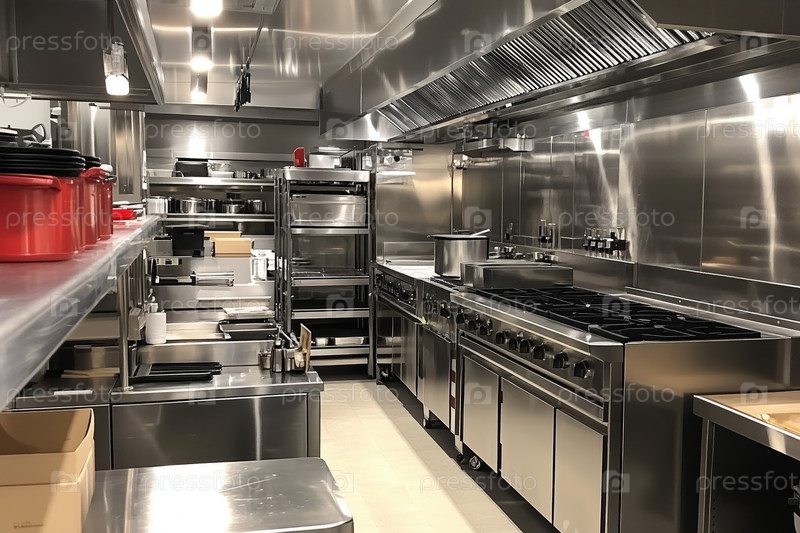 Коммерческая кухня с оборудованием из нержавеющей стали