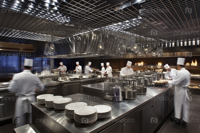 Шефы, готовящие в современной ресторановой кухне Профессиональные