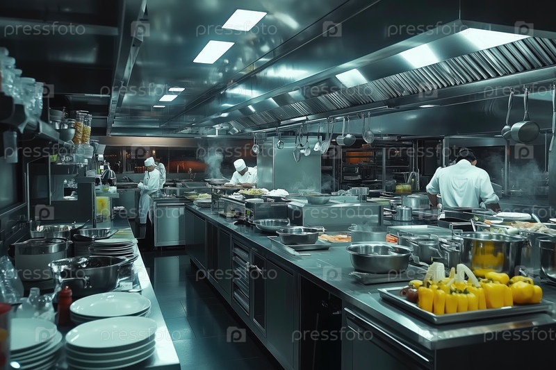 Профессиональные шеф-повары, готовящие блюда на коммерческой кухне