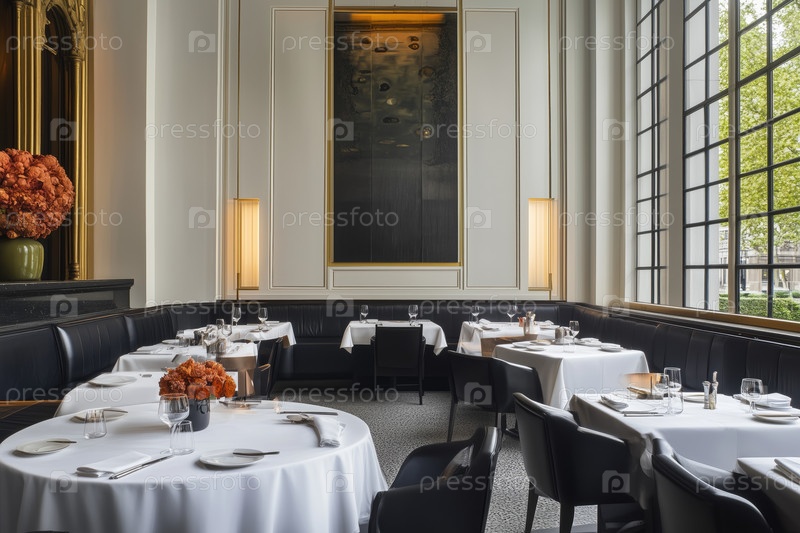 Софистицированная столовая с элегантно установленными столами