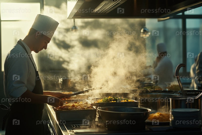 Профессиональный шеф-повар умело готовит гурманские блюда