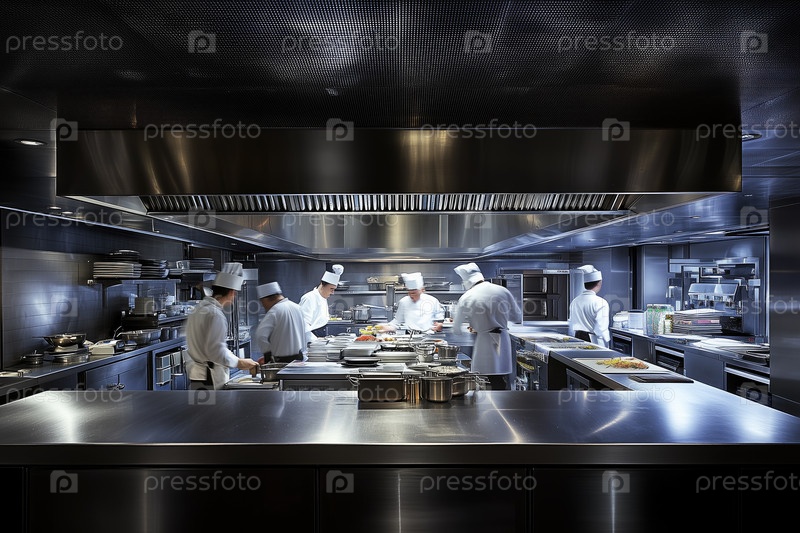 Профессиональные шеф-повары готовят блюда на современной кухне