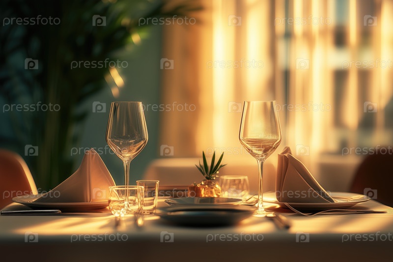 Элегантная установка обеденного стола с подсветкой на закате