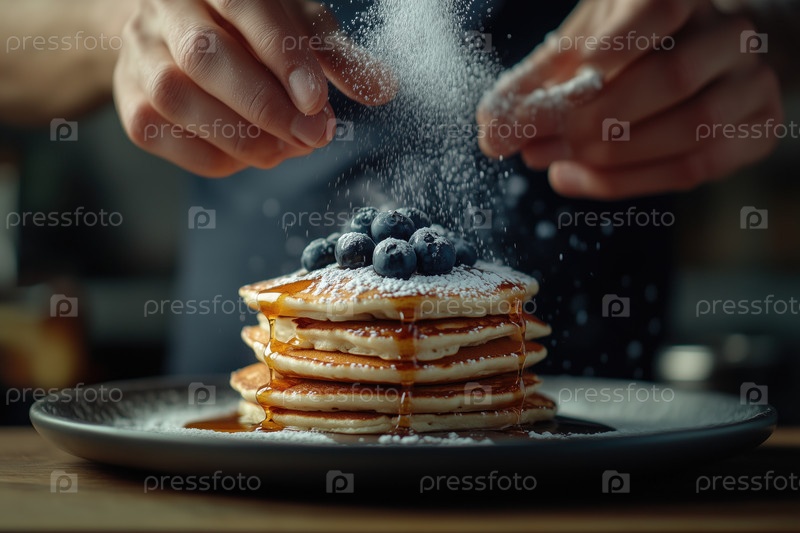 Посыпание сахара в порошке на блинчиковые блины