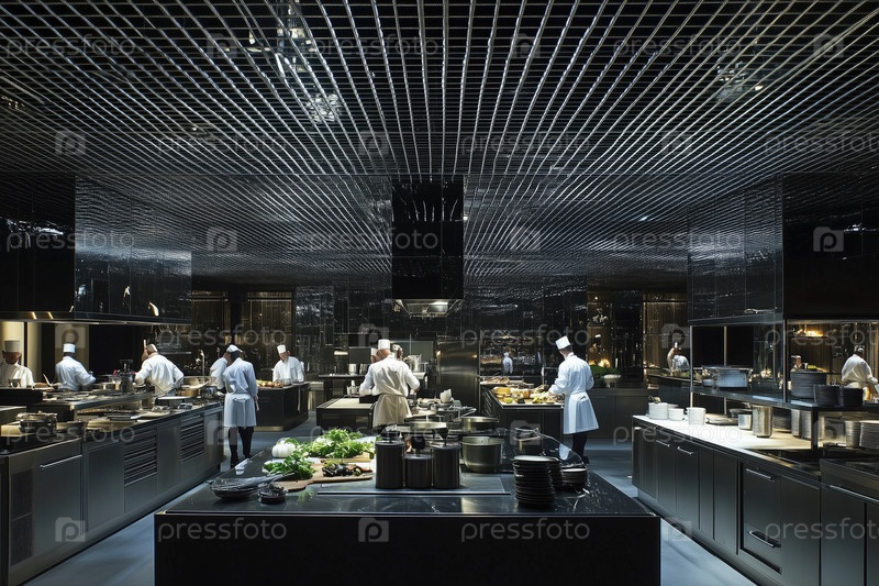 Шефы готовят гурманские блюда на кухне современного ресторана