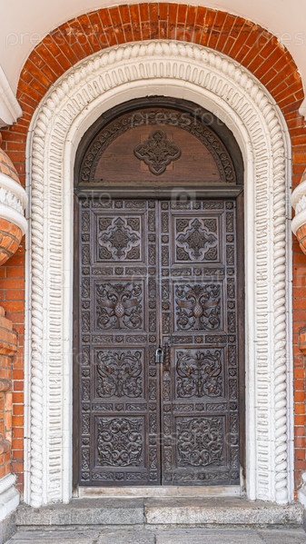 Фрагмент резной деревянной двери часовни Александра Невского в Ярославле
