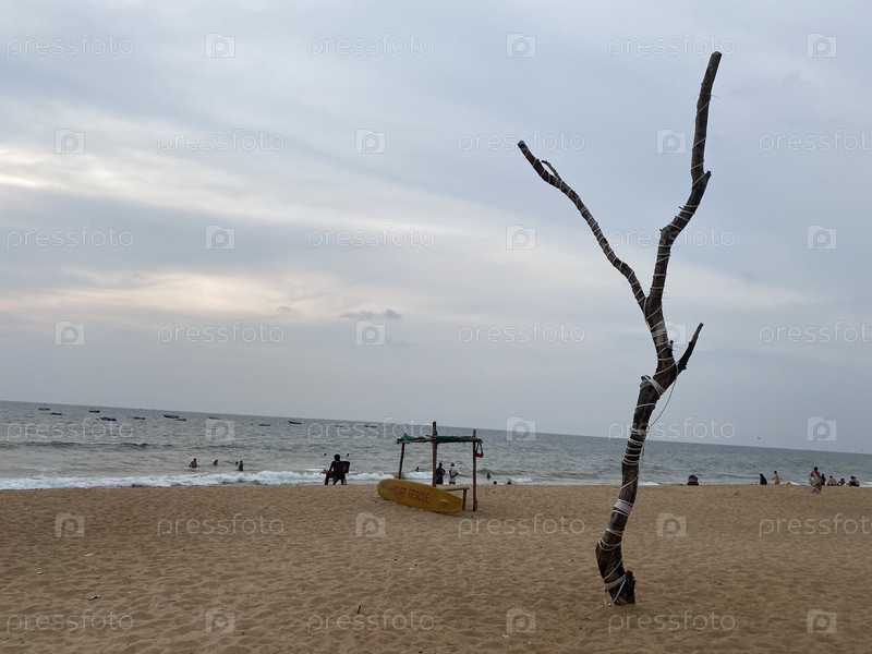 Одинокая коряга на фоне океана
