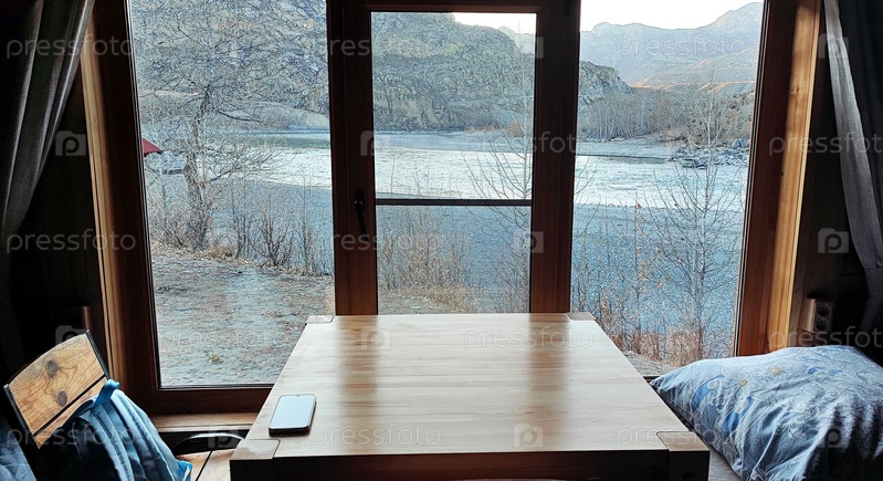 Вид на реку Катун из домика на базе Яломан. Республика Алтай. Россия. Вид на реку Катун с дома на базе Яломан. The Altai Republic. Россия. Дом с базы Яломан смотрите на Картонную реку。