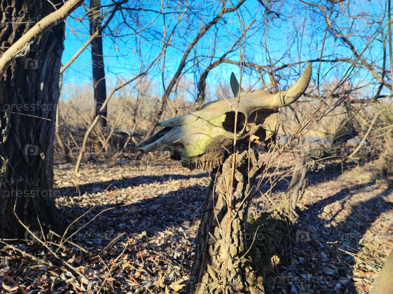 Старый череп быка в лесу