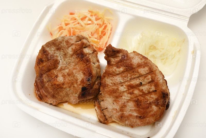Жареная свиная корейка с салатом. Вкусный мясной завтрак