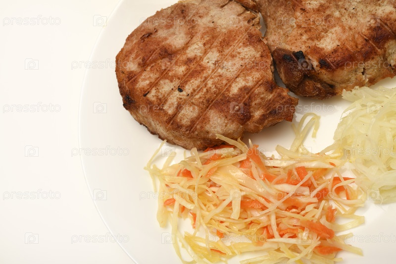 Жареная свиная корейка с салатом. Вкусный мясной завтрак