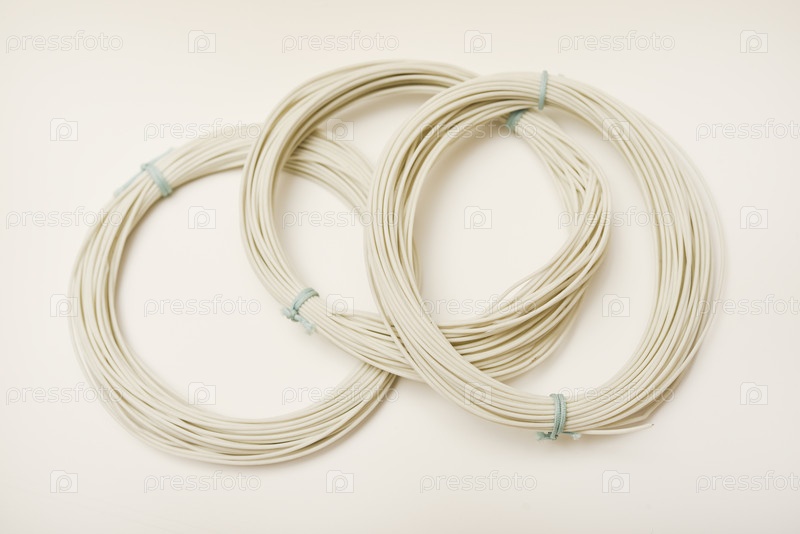 Скрутки монтажных проводов на белом фоне. Белые провода электроники