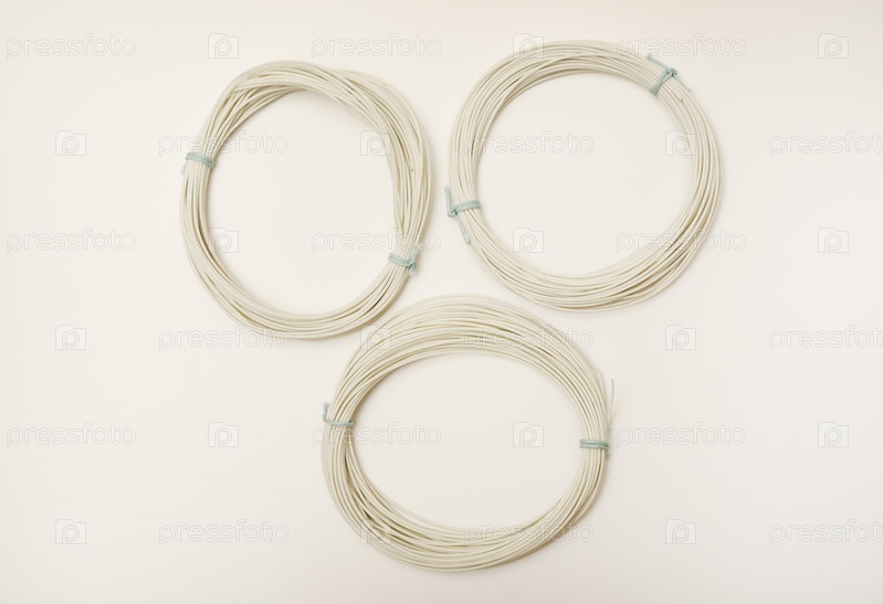 Скрутки монтажных проводов на белом фоне. Белые провода электроники