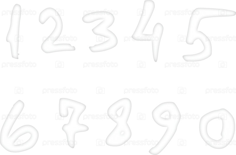 Набор прозрачных цифр от 0 до 9, изготовленных из жидкостей или других прозрачных веществ