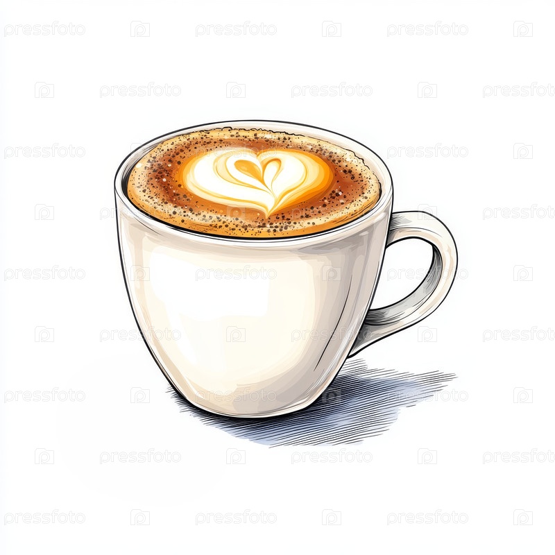 Искусство латте в белой чашке на белом фоне для уютного наслаждения кофе