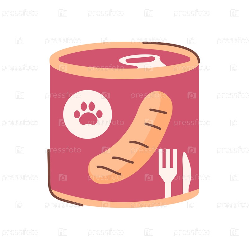 Векторная иллюстрация банки с кормом для домашних животных, кошек или собак