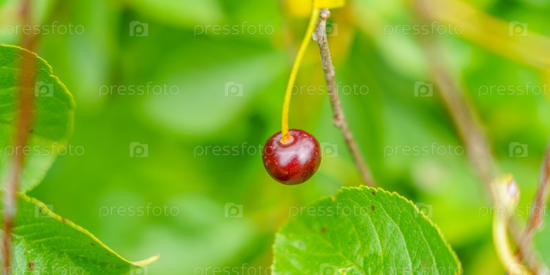 Красная дикая вишня на ветках вид снизу