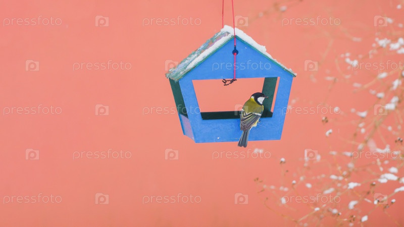 Птицы в кормушке холодным зимним днем