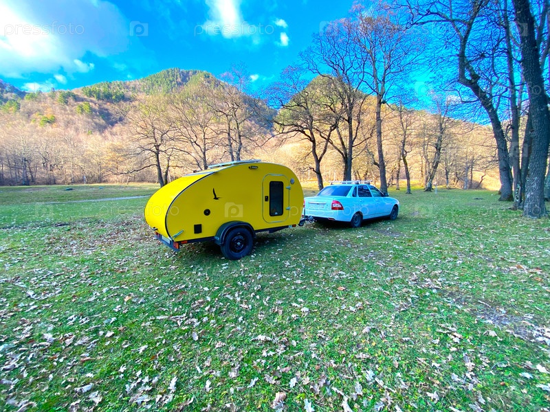Кемпер капля. Отдых на природе. Прицеп кемпер желтый. Вместо палатки