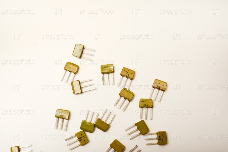Старые транзисторы на белом фоне. Электронные элементы