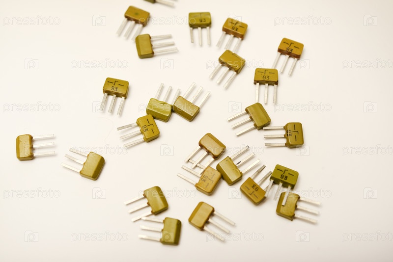 Старые транзисторы на белом фоне. Электронные элементы
