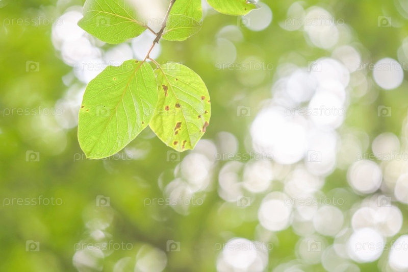 Флора абстрактное изображение зеленых листьев, размытый фон с круглыми светлыми пятнами