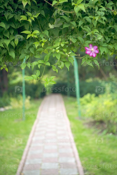 Декоративная арка из зелени с цветами над тротуаром