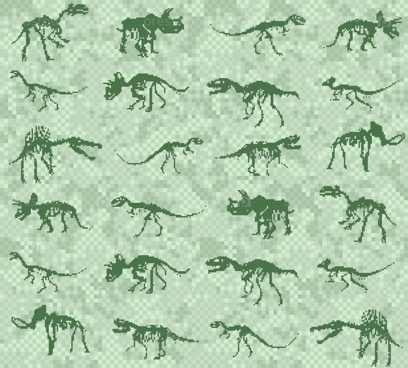 Бесшовный пиксельный фон с динозаврами