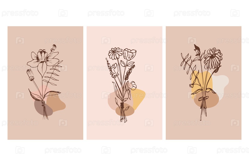 Коллекция весенних цветов, натуральных листьев, полевых цветов, роз в линейном стиле. Цветы нарисованные вручную. Минималистичный дизайн цветочной иллюстрации для логотипа, свадьбы, приглашения, декора, татуировки, ювелирных изделий. Векторная иллюстрация