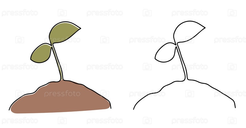 Непрерывный рисунок линии ростка с листьями. Растущее молодое растение. Плакат с саженцем в цвете и черно-белом. Концепция охраны окружающей среды, день земли, веганские продукты. Вектор
