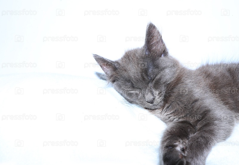Крупный план спящего кота на светлом фоне с местом для текста. Уютный дом с домашними животными, открытка или плакат ветеринарной клиники, магазина, реклама, селективный фокус