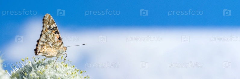 Бабочка на цветке в зеленой природе