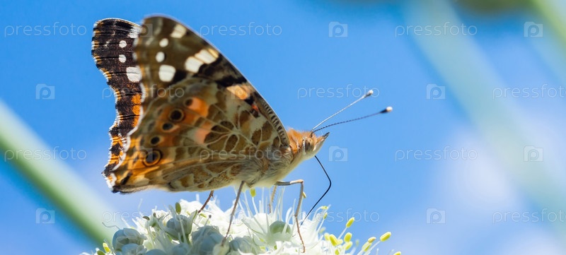 Бабочка на цветке в зеленой природе