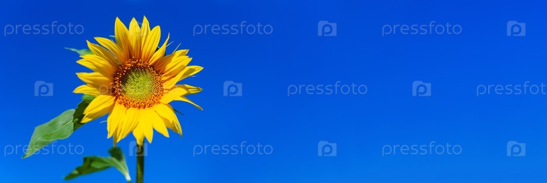 Красивый пейзаж с полем подсолнечника над голубым небом. Концепция природы