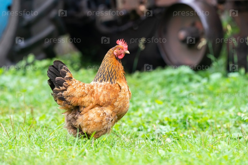 Рыжая курица в саду