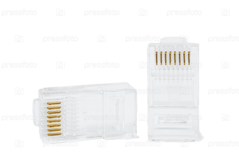Connecor RG-45 на белом фоне, изолированный крупный план